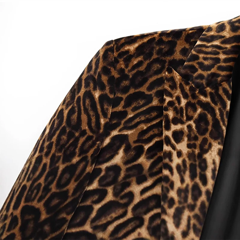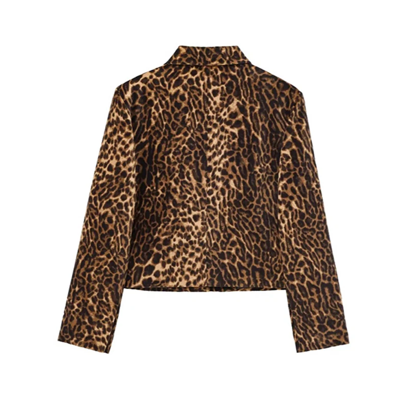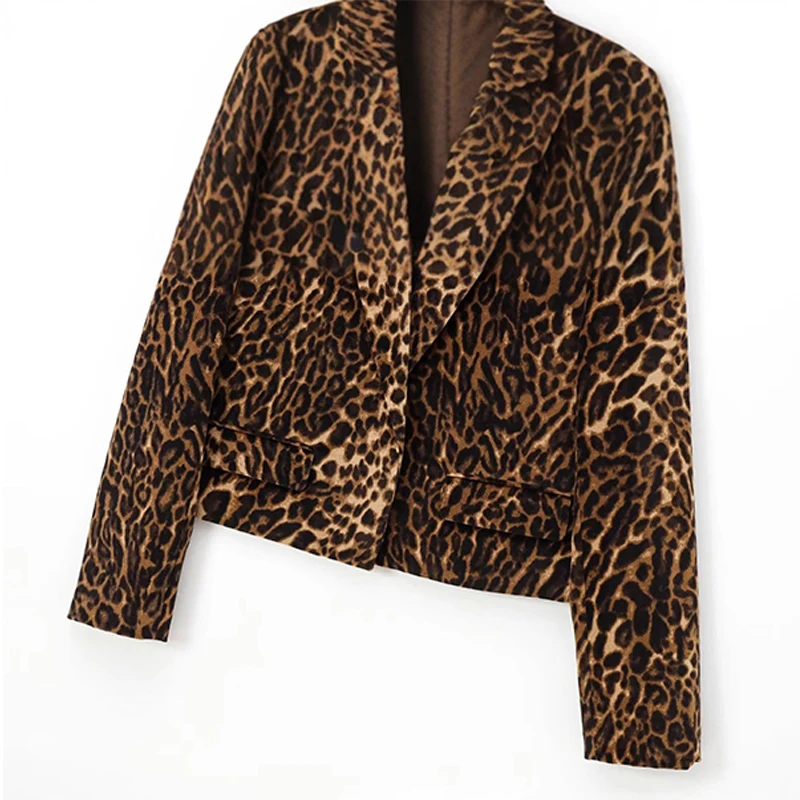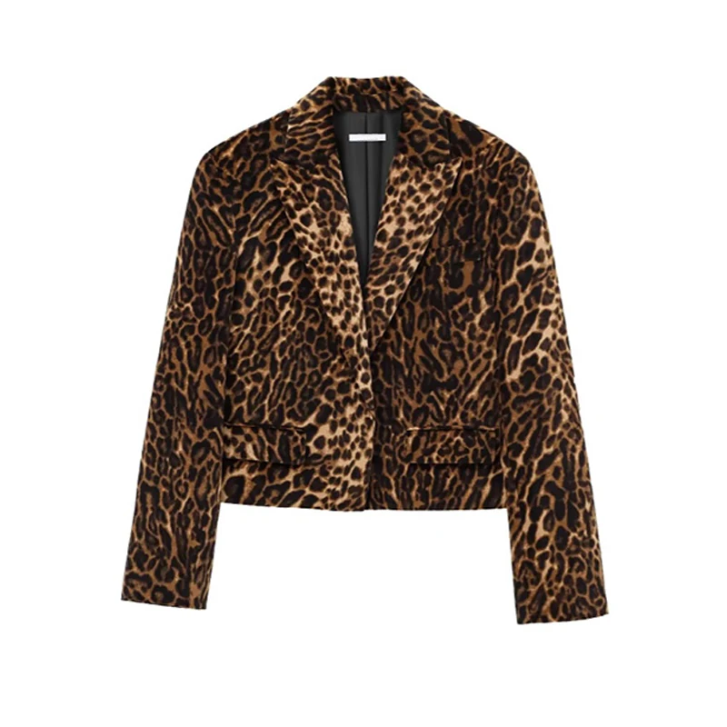 Custom Womens Leopard Print Cropped Blazer Street Style Faux Wool Animal Pattern Jacket